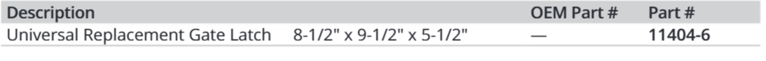 Pontoon Replacement Latch This durable lock set is a complete replacement kit for your pontoon's gate latch. Universal sizing fits square frames of 1", 1-1/8", and 1-1/4" on both left and right hinged gates. Secure closure stabilizes gate and prevents inward swinging. Includes mounting hardware for quick and easy installation. This durable lock set is a complete replacement kit for your pontoon's gate latch. Universal sizing fits square frames of 1", 1-1/8", and 1-1/4" on both left and right hinged gates. Secure closure stabilizes gate and prevents inward swinging. Includes mounting hardware for quick and easy installation.