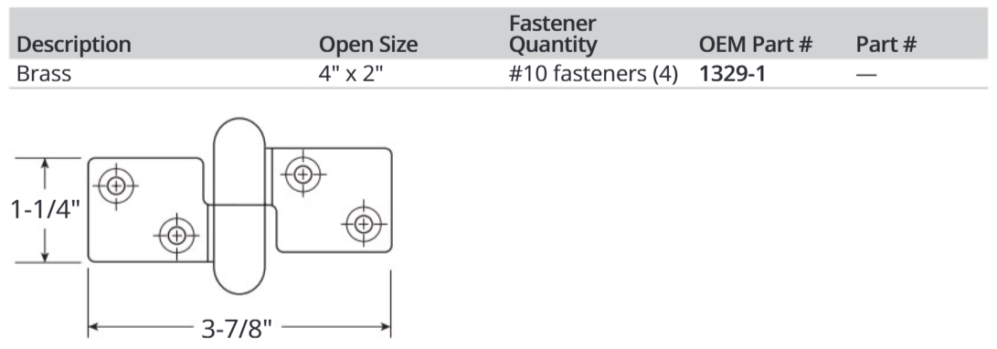 Take-Apart Motor Box Hinge, Non-Locking For use on motor box or hatch cover. Take apart feature allows removal of cover for engine service or bilge access.
